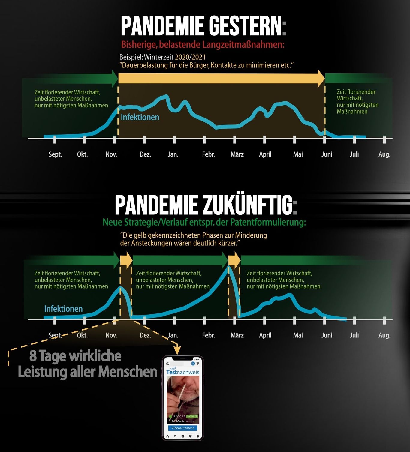 Das universelle Rezept zur Linderung einer Pandemie - egal ob weiche oder harte Pandemie - wäre die Konzentration der menschlichen Leistung beim Verhindern von Ansteckung, vergleichbar des Löschens eines Lagerfeuers: Kurz und heftig mit Eimern löschen klappt, langsam mit Schnapsgläsern nicht. Die Strategie in der Covid-Pandemie war das Löschen mit Schnapsgläsern, ersatzweise Leugnung, Bagatellisierung oder unmotiviert - oft widerwillig - mitmachen. Beispielweise: Menschen mussten sich beim Restaurantbesuch in eine Liste eintragen, um dann aber vis a vis dort zu essen und sich anstecken zu dürfen, u.v.m..